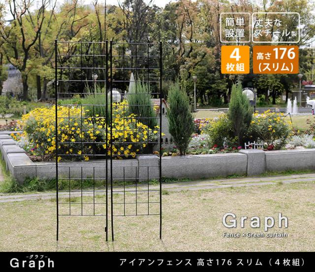 アイアンフェンス 高さ176 スリム グラフ 4枚組 フェンス アイアン ガーデンフェンス ガーデニング 枠 柵 仕切り 目隠し 境目 クラシカル アンティーク 格子 ベランダ つる 薔薇 バラ 朝顔 園芸 ラティス つるバラ庭誘引 屋外