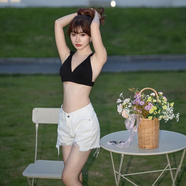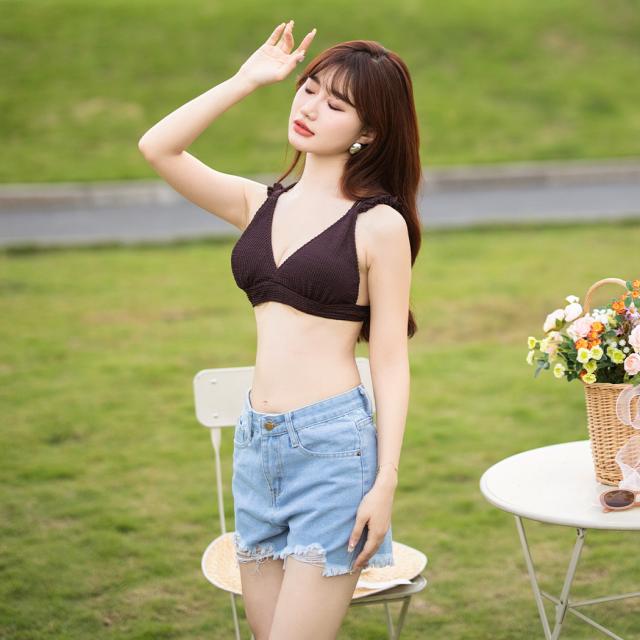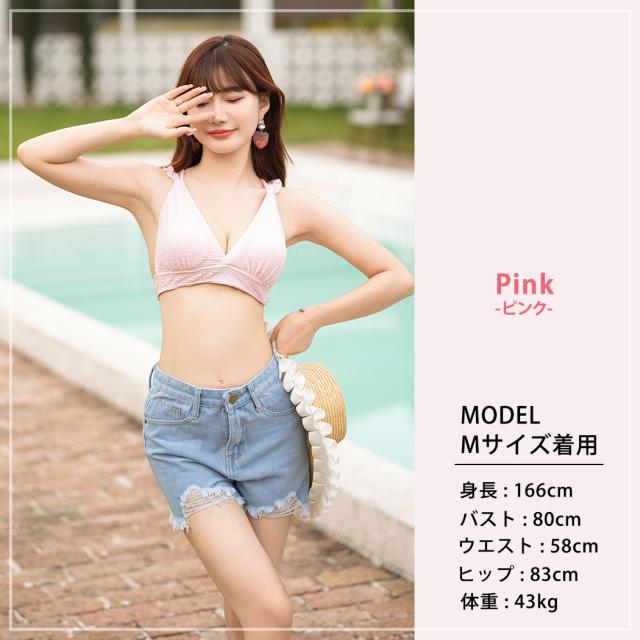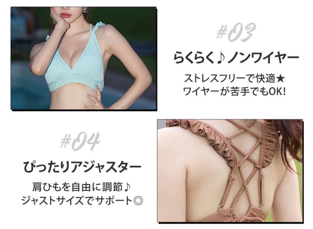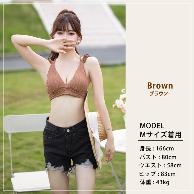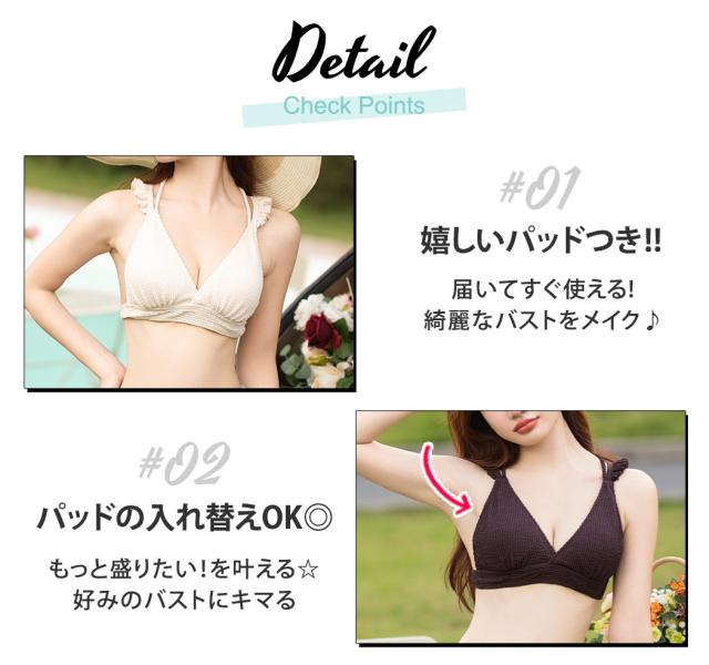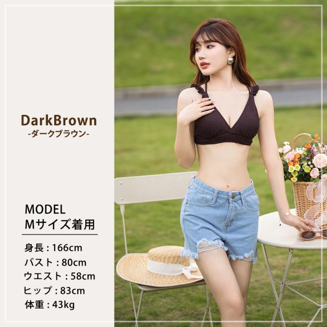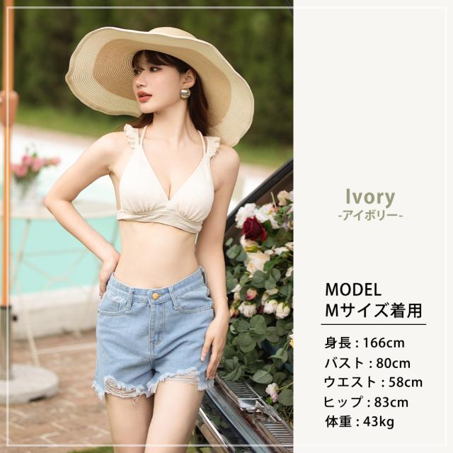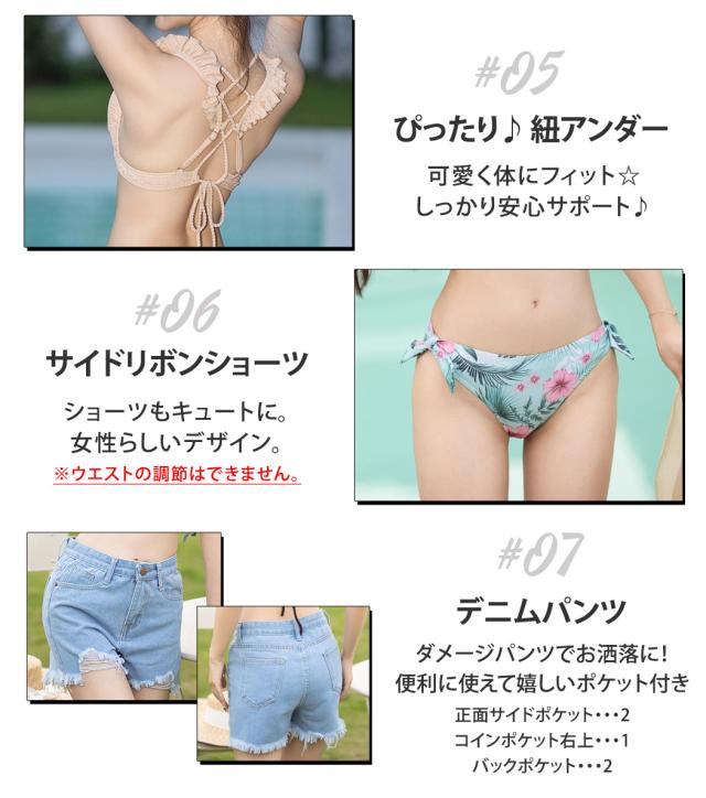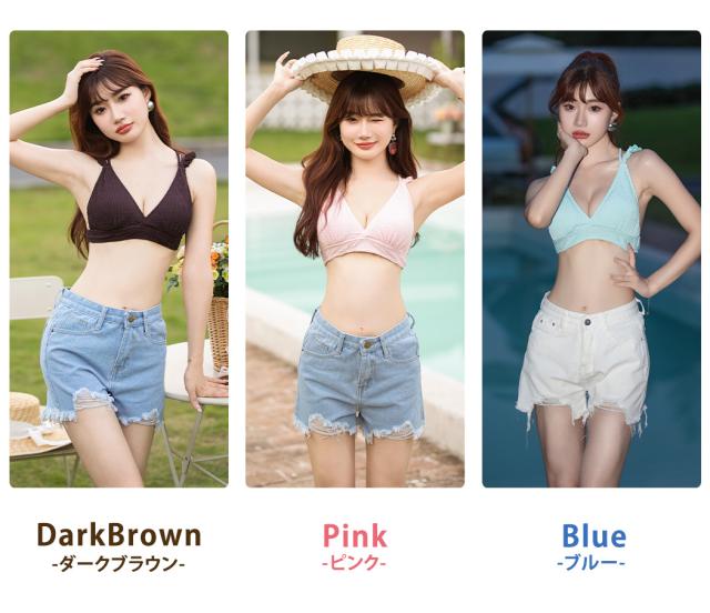 水着 レディース ビキニ 3点セット 三角ビキニ セパレート 大人 おしゃれ かわいい セクシー ガーリー フリル 無地 黒 ボタニカル 花柄 上下別 ミックスマッチ 背面 レースアップ デニム ショートパンツ シンプル リボン ノンワイヤー カップ パッド付き