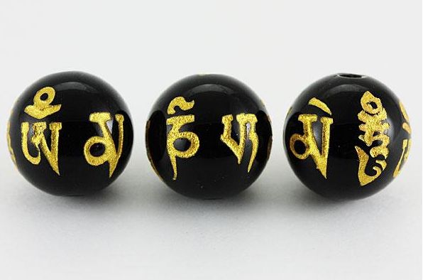 オニキス10mm (金) 六字真言 【彫刻 一粒売りビーズ】天然石 パワーストーン