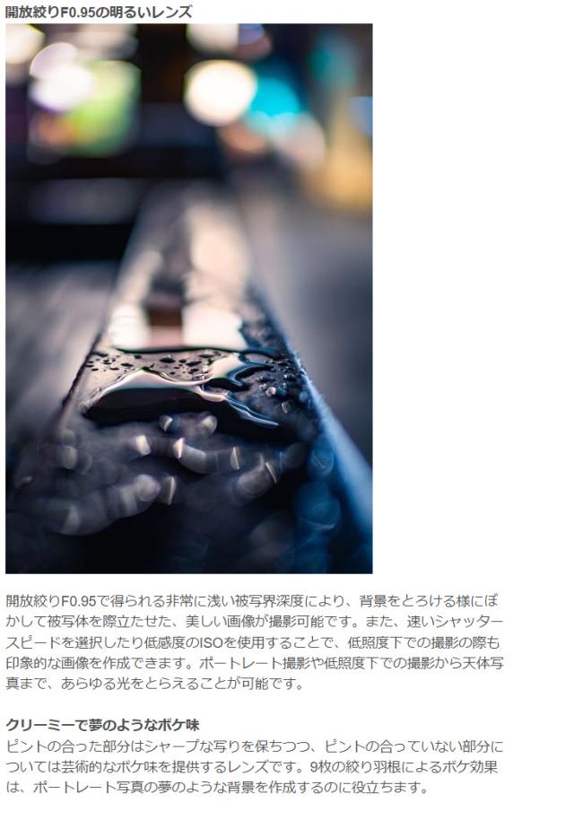 ■開放絞りF0.95の明るいレンズ