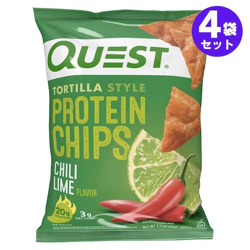 4袋セット Quest Protein Chips Chili Lime 1.1oz クエスト プロテインチップス チリライム 32g