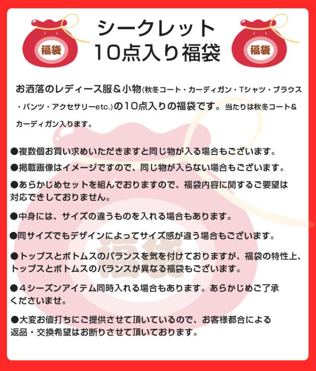 2026福袋、秋冬■シークレット福袋■10枚セット!5,980円×宅配便送料無料■神秘な中身内容 シークレット宝箱 秋冬コート カーディガン アウター ニットセーター パンツ スカート 裏起毛タイツ 靴下 ストール