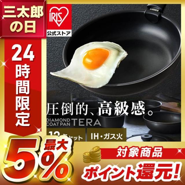 フライパンセット IH ガス火 深型 アイリスオーヤマ 取っ手が取れる アイリス史上No.1コーティング 滑りやすい 高耐久3層構造 ダイヤモンドコート 耐久性 長持ち 焦げつきにくい フライパン 炒め鍋 鍋 卵焼き器 エッグパン テラコート 12点 EHDC-S12S *