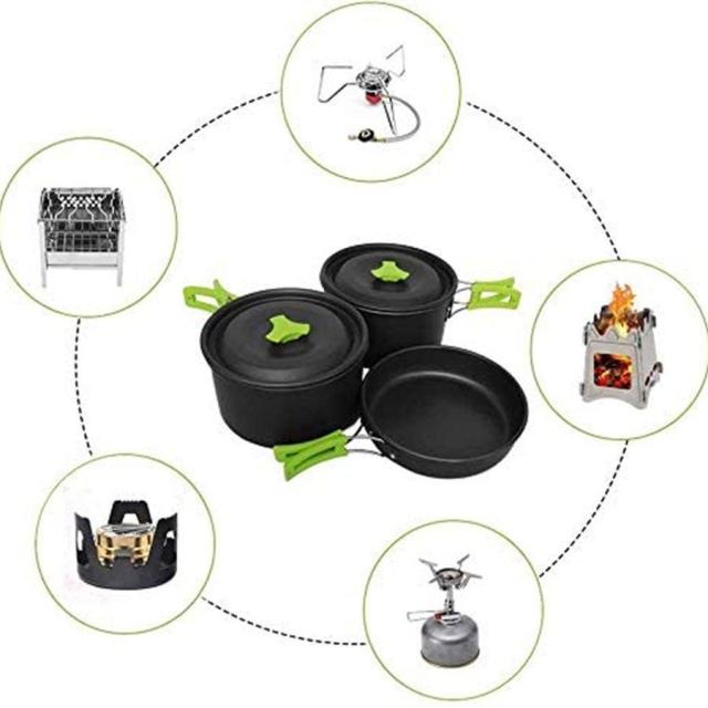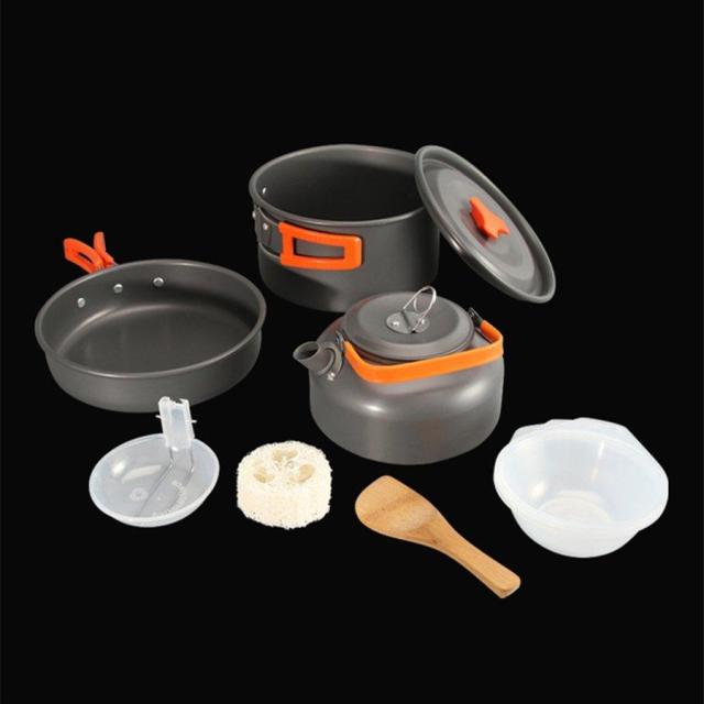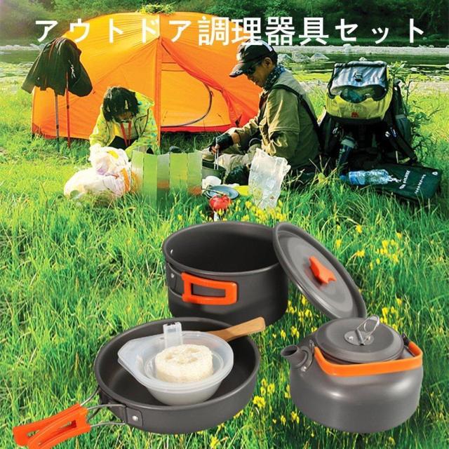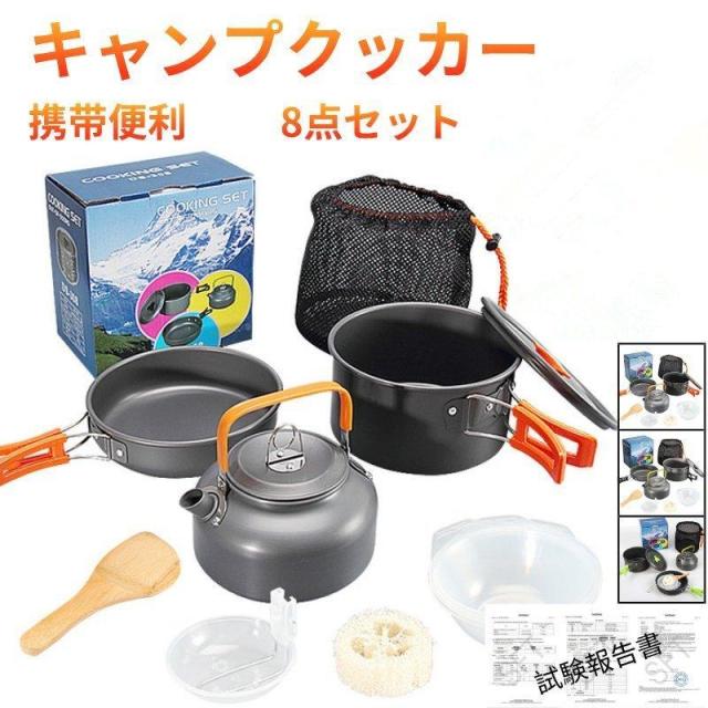 キャンプクッカー キャンプ用鍋 クッカーセット アウトドア調理器具セット キャンプ用品 登山用鍋 アルミクッカー BBQ食器 キャンピング鍋 2-3人に適応