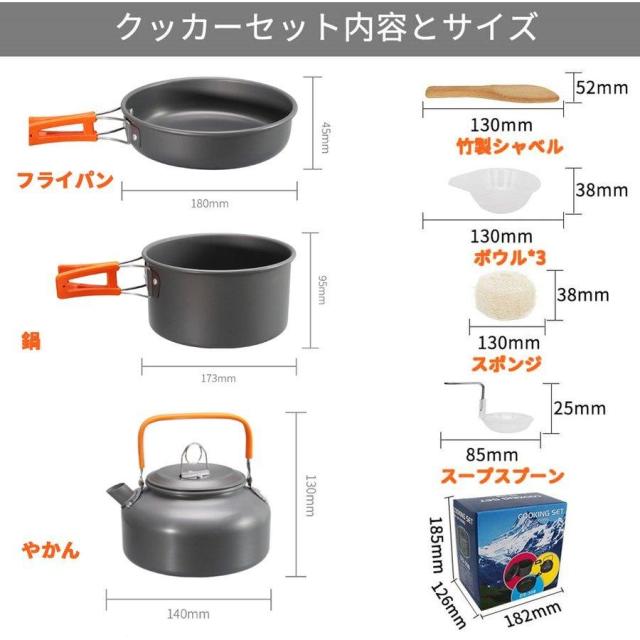 【多様な用途】アウトドア用にも家庭用にも適しており、キャンプだけではなく、登山、フィッシング、バーベキューなどにも非常に人気があります。キッチンにおいて必要なアイテムは全て揃っており、アウトドアにおける料理をお手軽に楽しんでいただけます