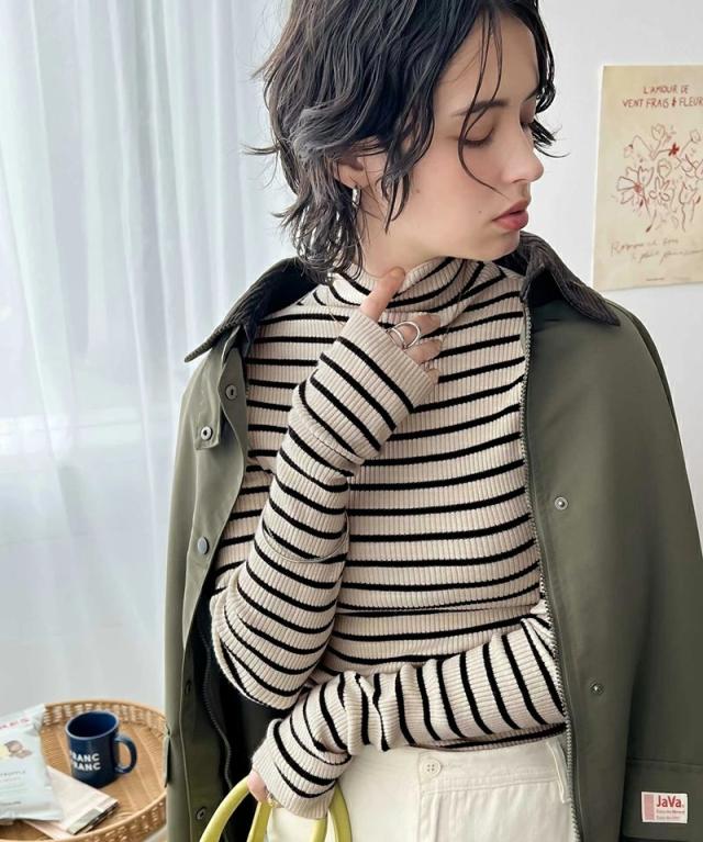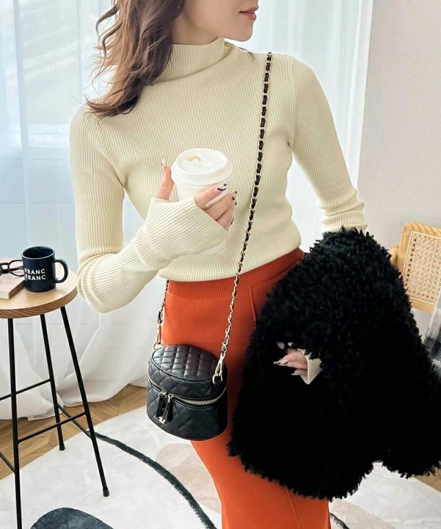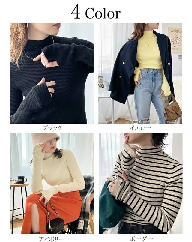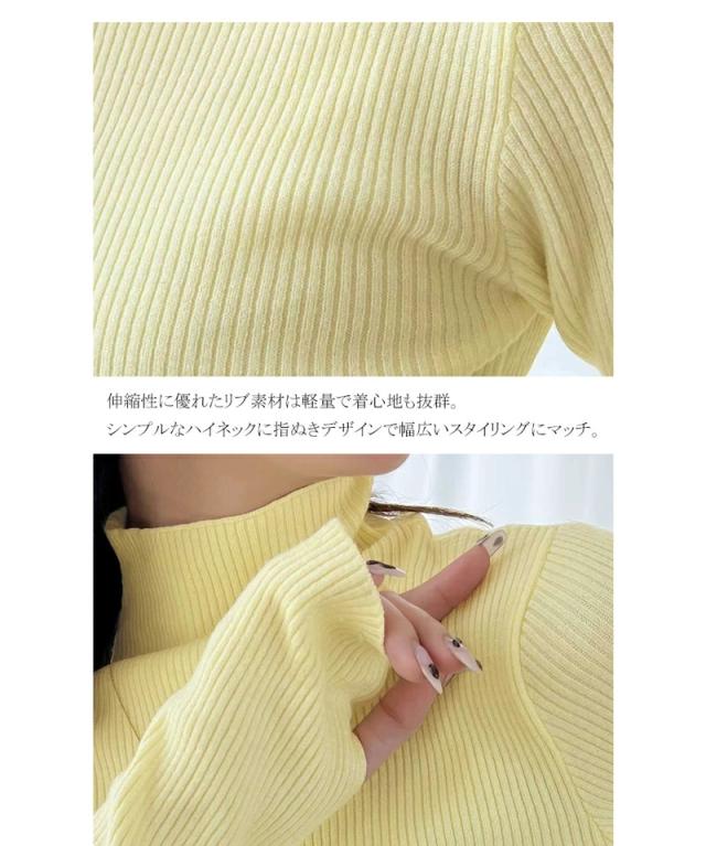 クラシカルエルフ 冬新作【mily bilet】 トップス セーター レディース 指抜き ハイネック リブ ニット 長袖 伸縮性 リブ素材 軽量 着心地 抜群 フィット感 シンプル インナー レイヤード スタイル 大きいサイズ 2022aw mi1149014