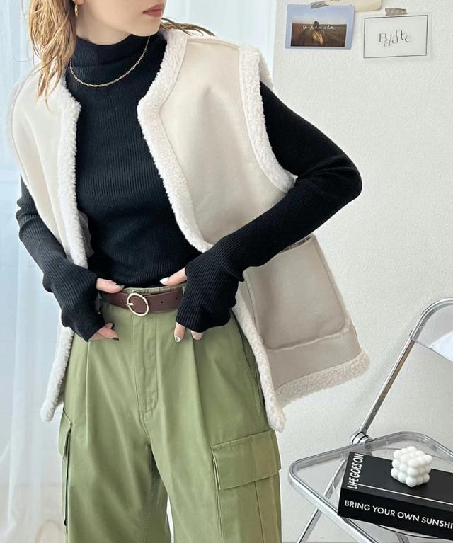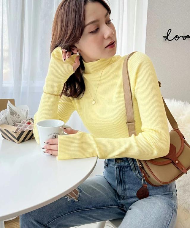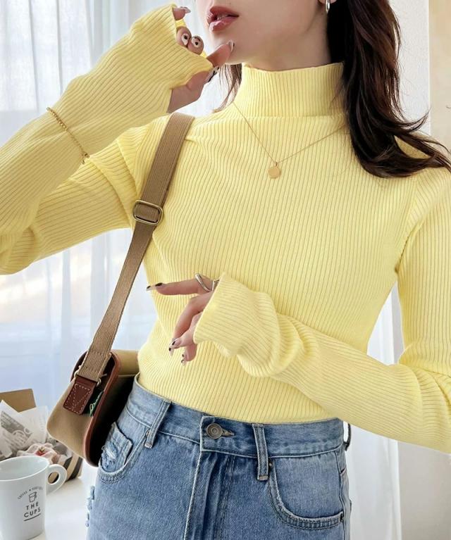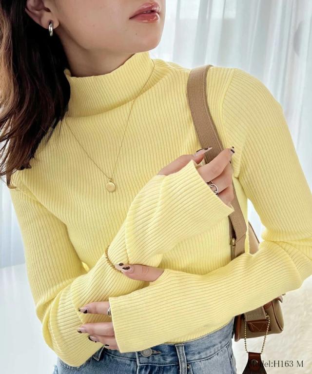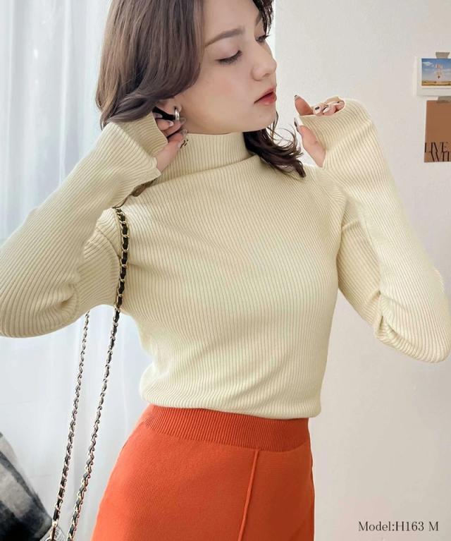 ★【mily bilet】さりげない洒落感。指抜きハイネックリブニット★