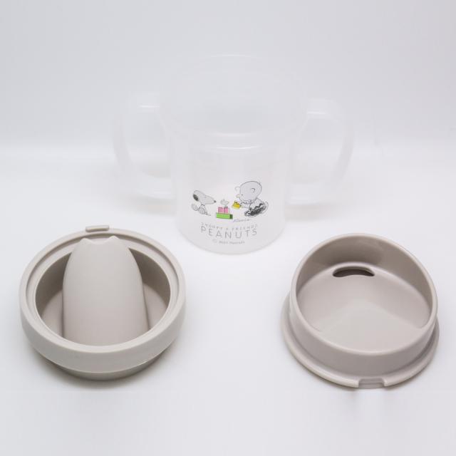 幅広い世代に愛されるスヌーピーのトレーニングコップのコボレスです。コップの蓋が二重構造になっているコボレスは、コップが倒れても中身がこぼれにくく、安心してトレーニングしていただける両手付きのコップです。初めてのコップ飲みにピッタリで、お子様の自分で飲みたい気持ちをしっかりサポートしてくれます。安心の日本製です。