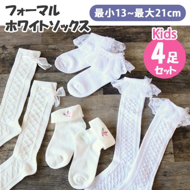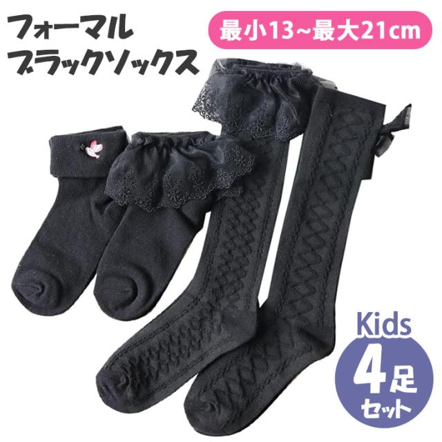 新作 キッズ 靴下 おしゃれ 黒 4足セット 女の子 子供 ハイソックス スクール クルー丈 かわいい 卒園 入園 卒業 入学 お遊戯会 発表会