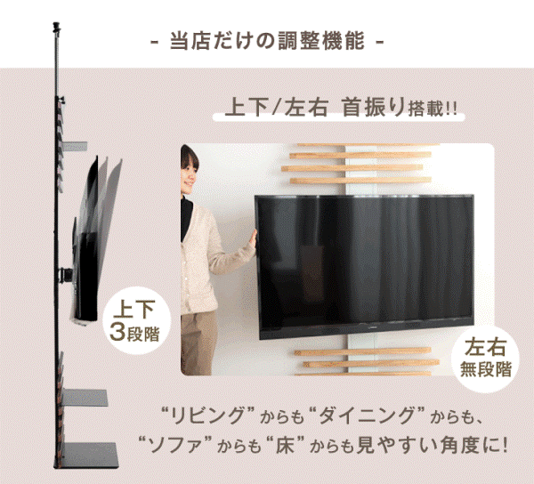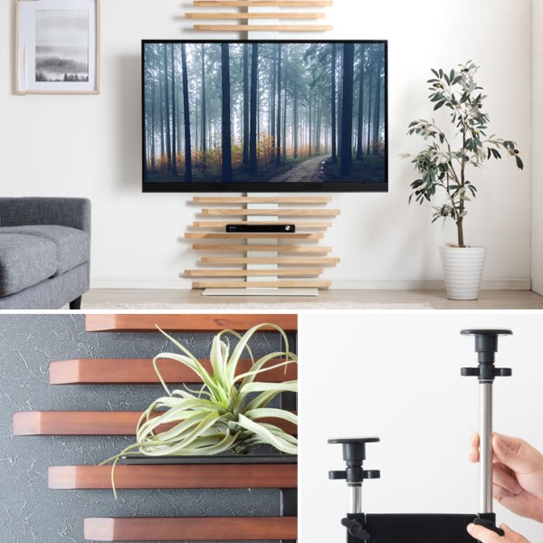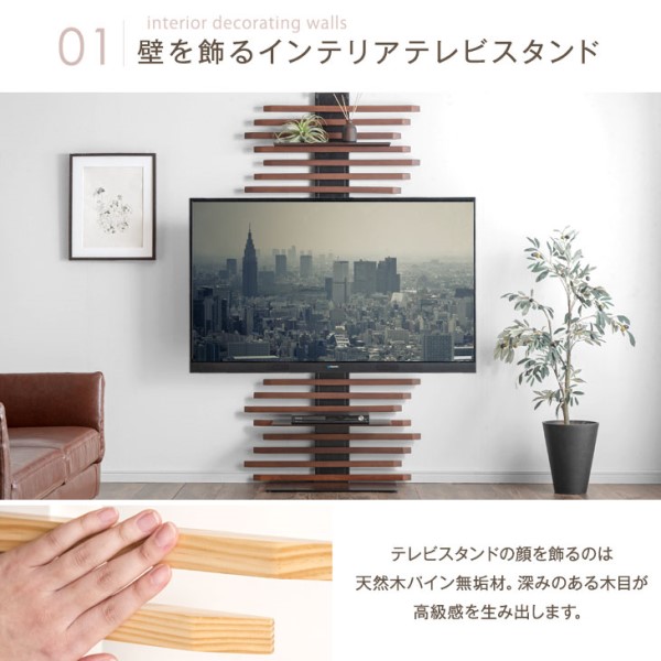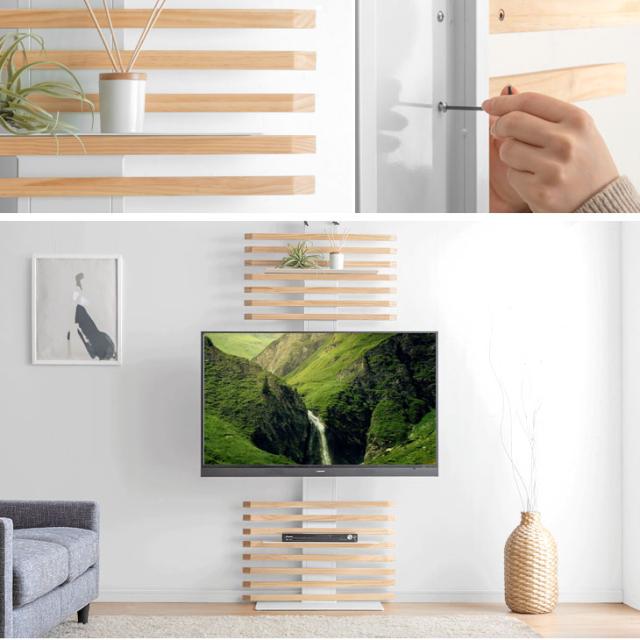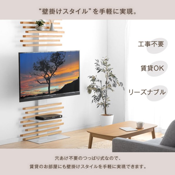 テレビスタンド 天然木 突っ張り式 上下/左右首振 最大65インチ対応 首振り テレビラック テレビ台 壁寄せテレビスタンド 壁寄せテレビ台 突っ張り 収納棚 収納 大型テレビ 対応 壁寄せ 壁面 壁面収納 壁面ラック 壁掛け風 ハイタイプ おしゃれ 木製