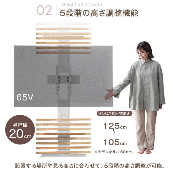テレビ台 テレビスタンド 壁寄せ ハイタイプ 壁寄せテレビスタンド 首振り 天然木 突っ張り 上下/左右首振 最大65インチ対応 テレビラック 壁寄せテレビ台 収納棚 収納 大型テレビ 壁面 壁面ラック おしゃれ 木製