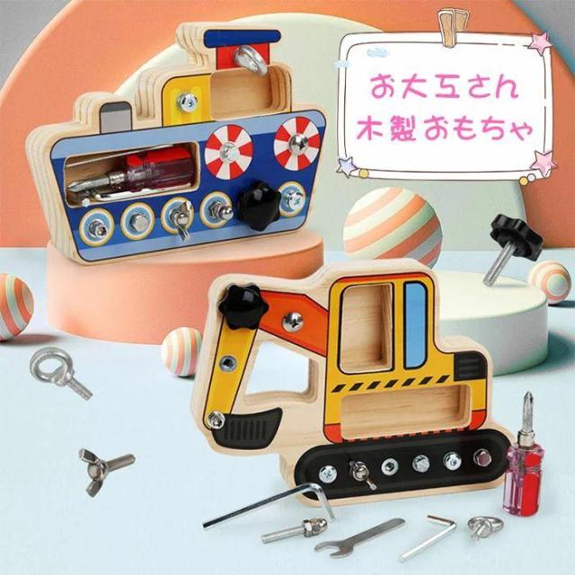 大工さん工具セット おままごと 木のおもちゃ ごっこ遊び はじめての大工さん 木製ツールボックス ネジ ねじ ドライバー スパナ 修理 多機能 木製 パズル モンテ