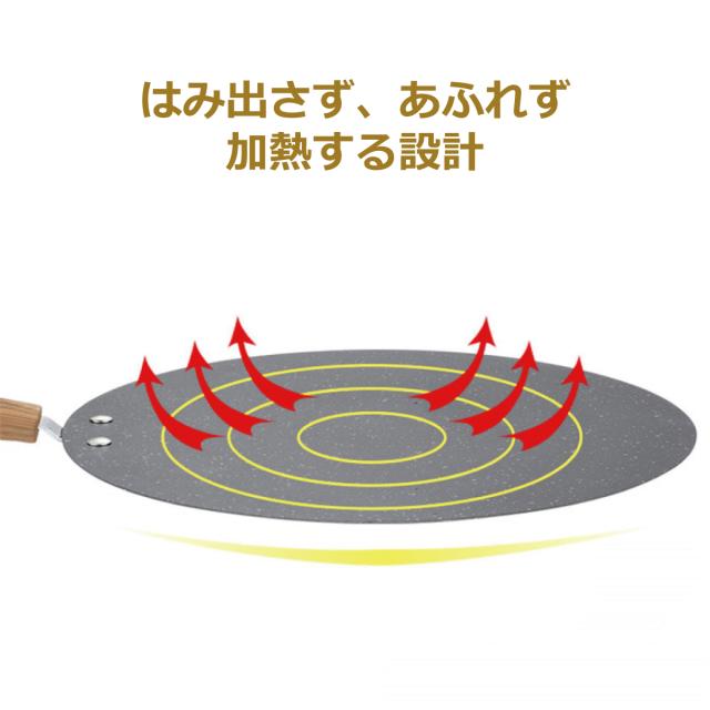 均一で効率的に熱が伝わり、はみ出さず、あふれず加熱する設計です。IHI対応。