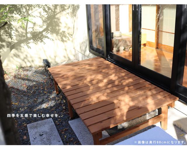 デッキ縁台は、置くだけで、まるで室内の延長のように空間が広がり、癒しのスペースになる優れもの。