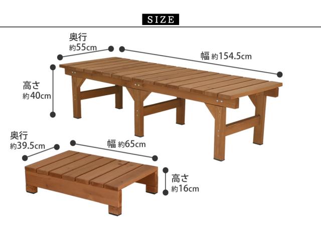 | デッキ縁台:幅 1545×奥行 550×高さ 400mm ステップ:幅 650×奥行 395×高さ 160mm |