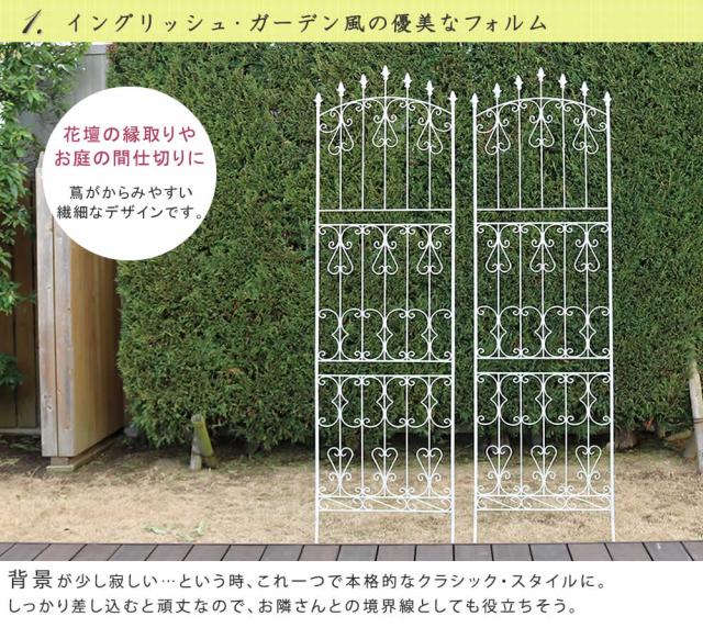 | アンティークな曲線美が美しい英国風のアイアンフェンス薔薇をからませるのにピッタリ! エレガントな雰囲気のアイアンフェンスです。 硬質な印象のアイアンの中ではめずらしく、やわらかなブラウンカラーの塗装と、薔薇のツタ&薔薇のつぼみのデザインが施され、上品で華やかなイメージ。 壁に立てかけるだけで瀟洒(しょうしゃ)な存在感があり、蔦をからませればまるでロマンチックな古城の庭! オフシーズンでもお庭を華やかにしてくれます。 薔薇とはもちろんベストマッチで、美しさをより引き立てます。 ゴーヤやキュウリでグリーンカーテンにしても◎。 高さ220cmのハイタイプは、道路からのちょっとした目隠し&防犯に最適です。 やんわりと視線を遮りながらも、風通しが良く、軽やかでオシャレ。 見るたびに幸せな気持ちになれるフェンスです。 |