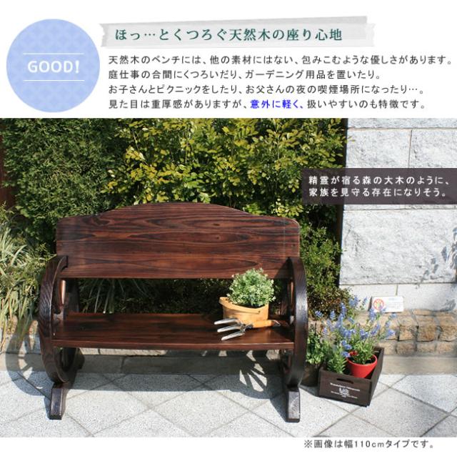 ウッディな車輪が目を惹く、存在感たっぷりのガーデンベンチ19世紀のイングリッシュ・ガーデンを彷彿とさせる、ヴィンテージ風の車輪ベンチです。