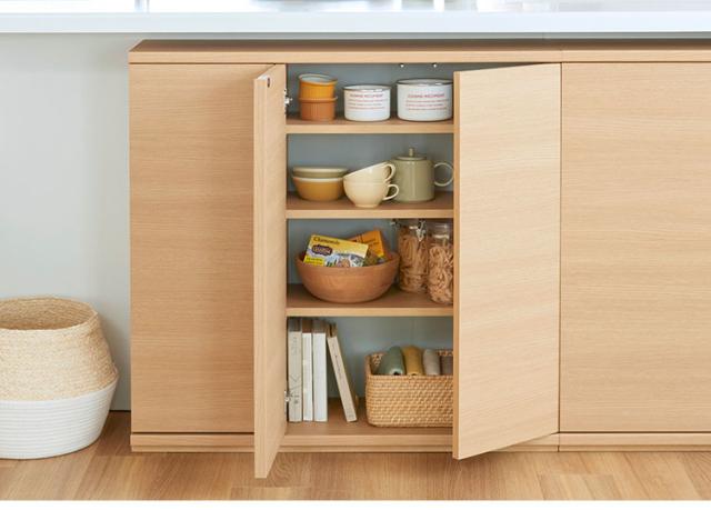 ・いくつかの幅を組み合わせて、カウンター下にぴったりの幅を選ぶことができるユニット収納です。