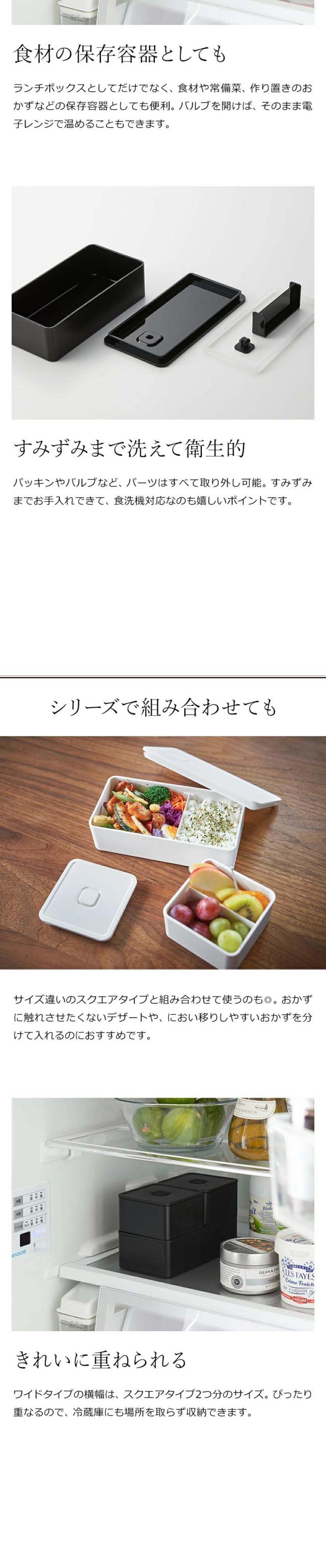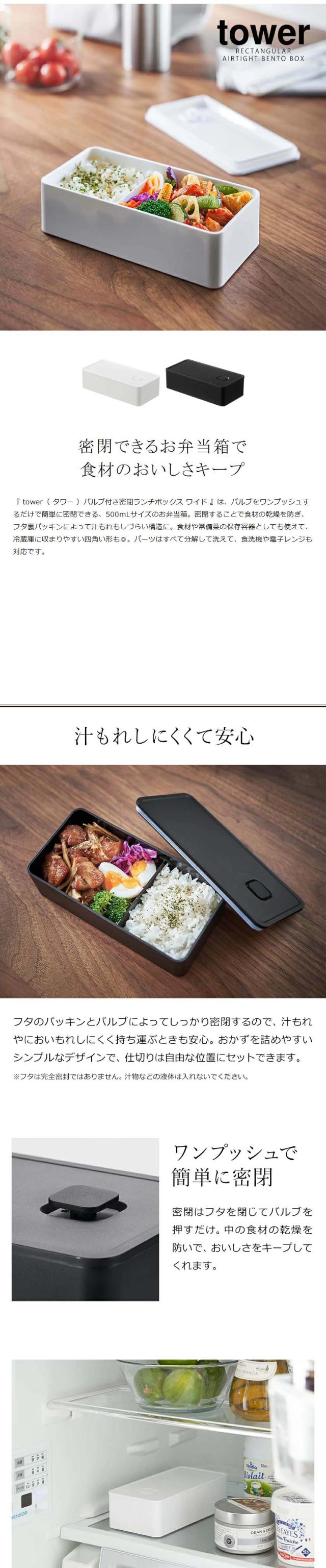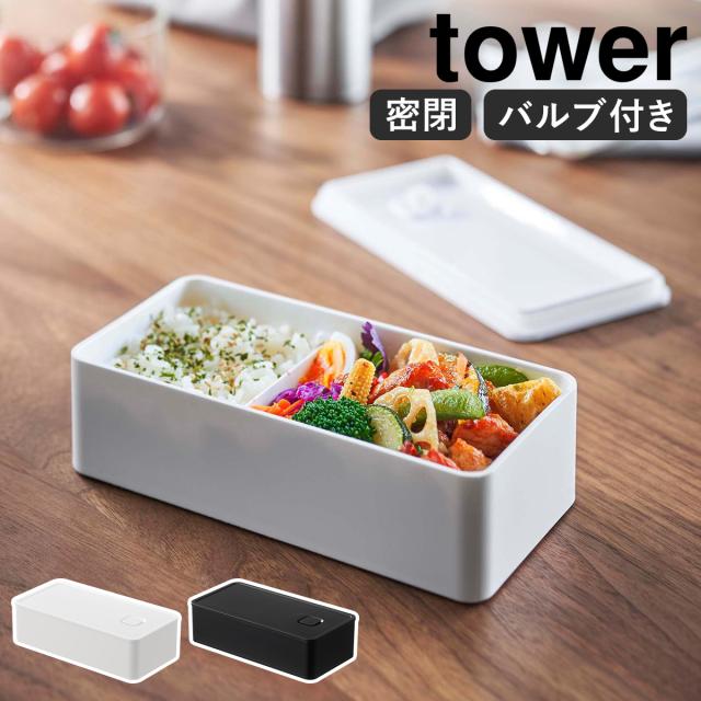 [ バルブ付き密閉ランチボックス タワー ワイド ]山崎実業 tower 弁当箱 バルブ付き ランチボックス 1段 密閉 保存容器 電子レンジ対応 食洗機対応 仕切り 500ml パッキン付き 大人 弁当 おしゃれ モノトーン yamazaki ブラック ホワイト 5471 5472