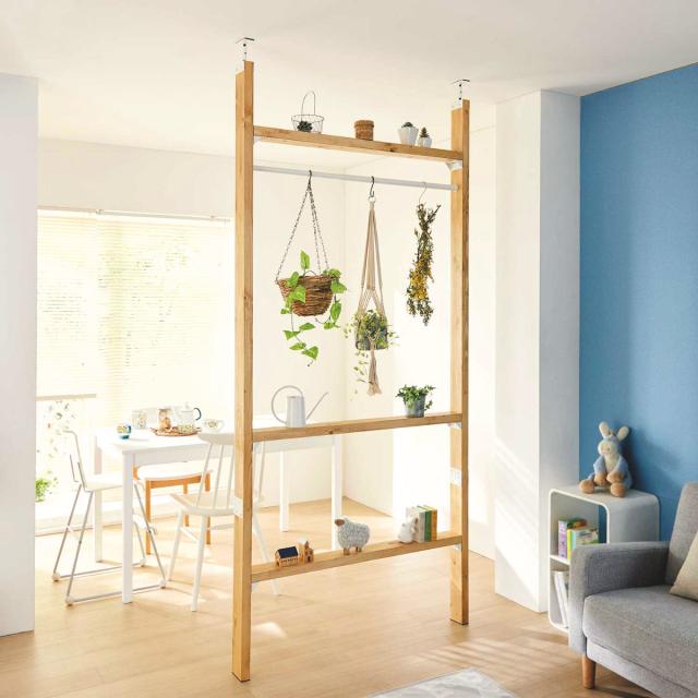 | 注意事項 | ※木材は付属しておりません。 ※この商品は縦突っ張り専用です。横向きには使用しないでください。 ※下地のしっかりした場所に設置してください。下地の弱い所に設置すると転倒の原因となったり、天井を破損したりする恐れがあります。 ※傾斜した天井、床面には設置しないでください。転倒の原因になります。 ※柱に対し片側に荷重が掛かる場合は20kgまでとしてください。 ※商品ページ内には別の商品を含む画像を使用しています。 |