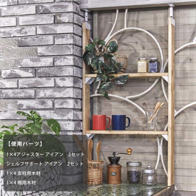 アジャスター LABRICO ラブリコ アイアン DIY パーツ 1×4材用 棚 ラック ( 突っ張り 収納 つっぱり 壁面収納 壁 間仕切り 賃貸 簡単取付 パーテーション ウォールシェルフ ウォールラック 突っ張り収納 見せる収納 おしゃれ )