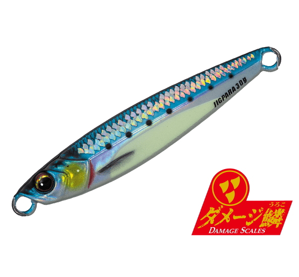 発売以降ショアジギング用ジグの定番となったジグパラシリーズ、「めっちゃ釣れる」「使いやすい」とネットでも評判をいただいている中、「ほとんど餌」という評価もたくさん頂いています。それならもっと餌(ベイト)に近づけるためにベイトとなる魚、イワシ・アジ・サバをジグパラに生き写しできる塗装を施しました。