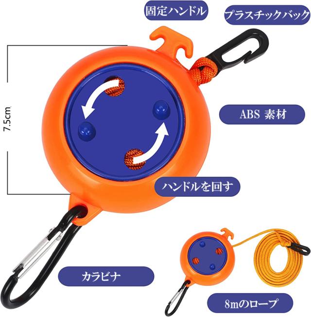 【簡単な取り付け】ロープを使用する必要がある場合は、収納ボックスの回転軸を回転させて、必要な長さに引き出して固定することができます。使用しないときはすぐに引っ込めることができ、絡まることはありません。