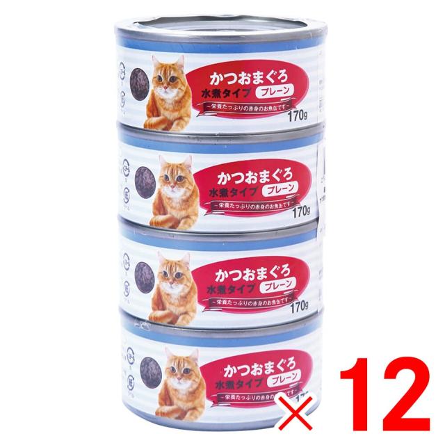 猫の缶詰 かつおまぐろ プレーン 水煮タイプ (170g×4缶) ×12個 ケース販売