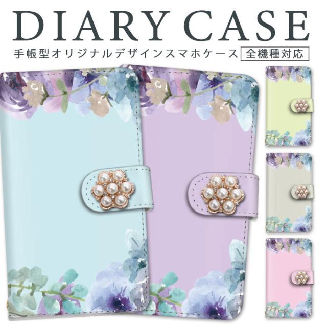 手帳型スマホケース AndroidOne ★ flower 大人 デコレーション付き 手帳型 スマホ スマホケース 手帳 シンプルスマホ グーグルピクセル かんたんスマホ アクオス レッドミー アクオス shg03 ケース shg07 shv43 手帳型 クリア ショルダー