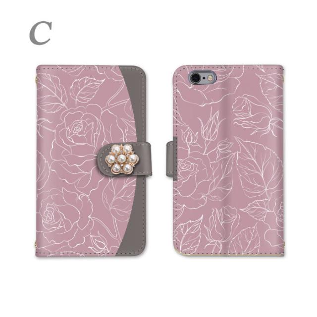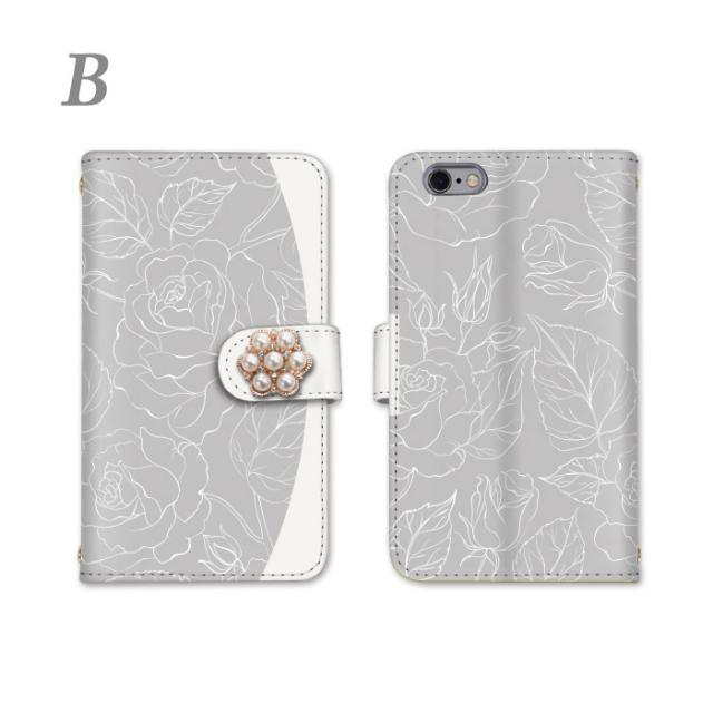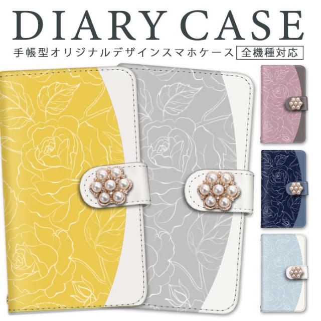 スマホケース galaxy ★ 花柄 パール付き ラインアート けいたいカバー 鏡付き 鏡 かんたんスマホ2 あんしんスマホ アクオス アルバーノ アイフォン YAL-L21 808SH BLA-L29 SC-56B SH-01K SHV41 SH-RM11 SC-52C SOV40 SHG06 SC-42A 601SO クリア ショルダー