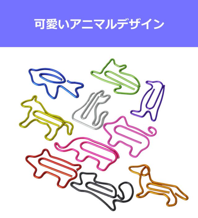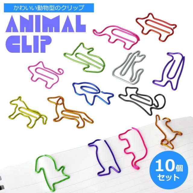クリップ アニマル ゼムクリップ ペーパークリップ 10個入り 文房具 動物 犬 猫 かわいい 書類 整理 カラフル PR-CLIP10【メール便 送料無料】