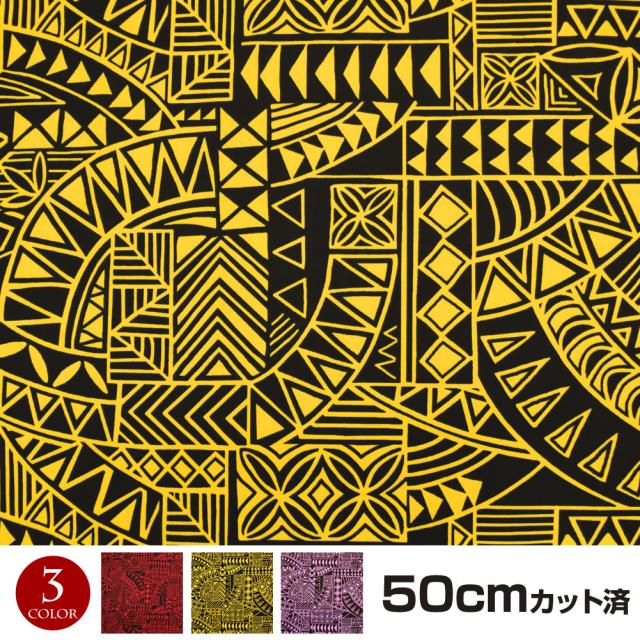 生地 ハワイ柄 ハワイアン柄生地 (約113cm巾x50cmカット済) LET212KB2[M便 1/5] 布 柄生地 ハワイアンプリント生地 パウスカート生地 服地 インテリア生地 フラダンス衣装の材料 クッションカバー カーテン 綿混 レッド イエロー パープル