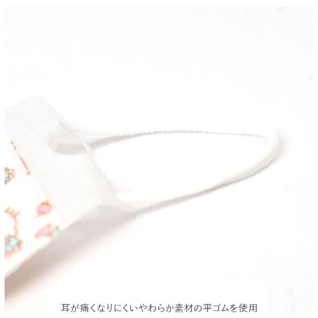 | 商品説明 | ・可愛いキャラクター柄の「子ども用立体マスクS(7枚入り)」が新登場♪ ・お子さまに最適な小さいサイズ!(※対象年齢2〜3歳) ・表地(飛沫の水分を防ぐシート)、フィルター(花粉、ウィルス飛沫を99%カット)、裏地(肌ざわりの良い快適シート)の三層構造。 ・すきまを作らない立体カーブでお顔にフィット♪口元に空間が出来るので、イヤな息苦しさが軽減! ・耳が痛くなりにくいやわらか素材の平ゴムを使用。 ・花粉・ウィルス飛沫対策に!1週間、毎日使える7枚入◎ |