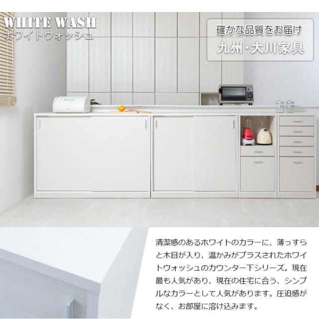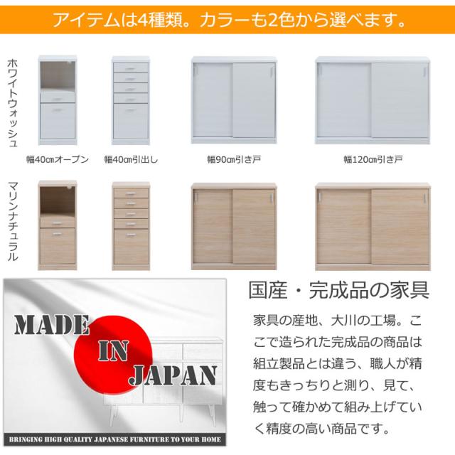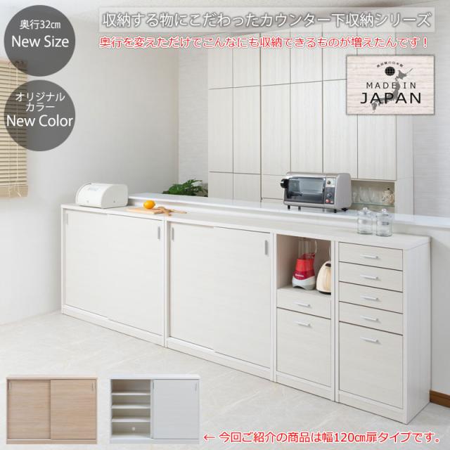 日本製 完成品 カウンター下収納 引き戸タイプ 幅120cm 【送料無料】 ホワイト 白 ナチュラル 大川家具 北欧 国産 引戸 扉付き