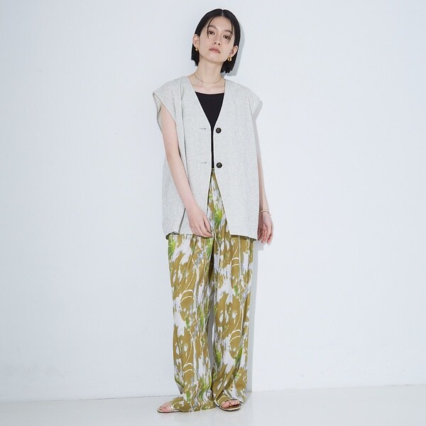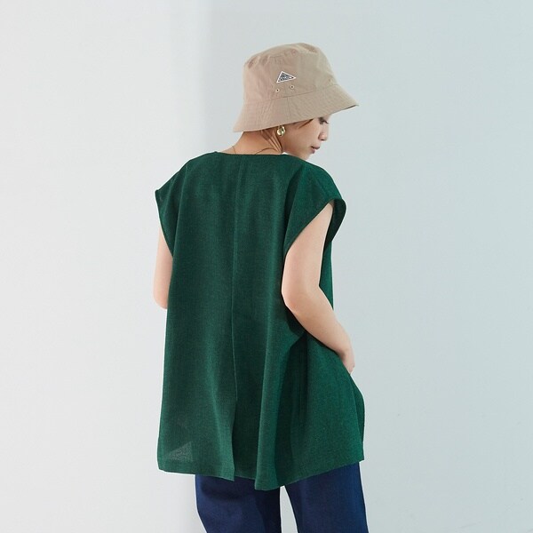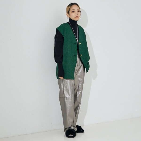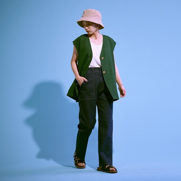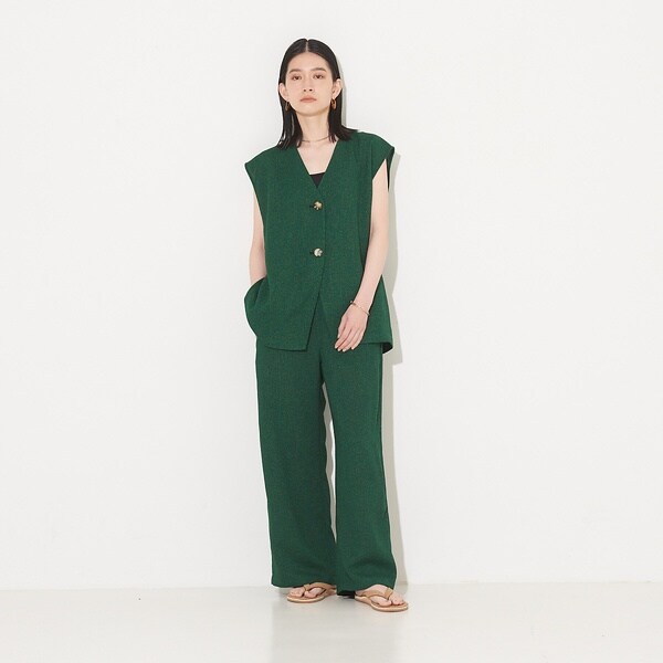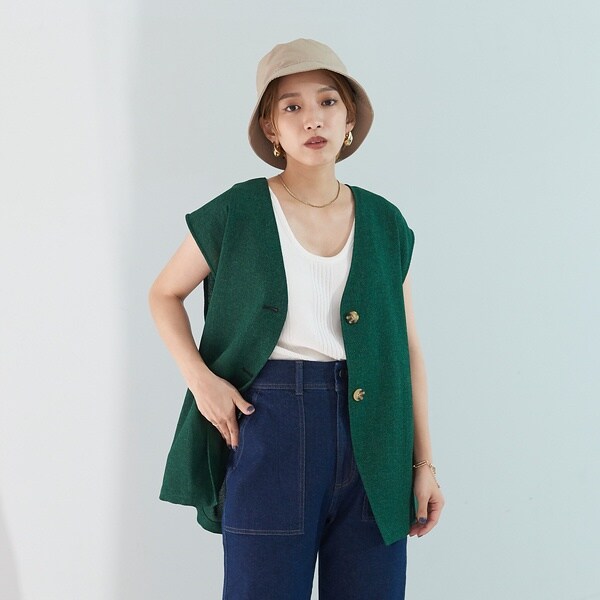 表面感のあるリネンライクなサマーツイード生地がポイントのシンプルベスト。
