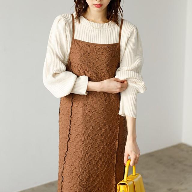 ぽこぽこカットジャカードキャミワンピース