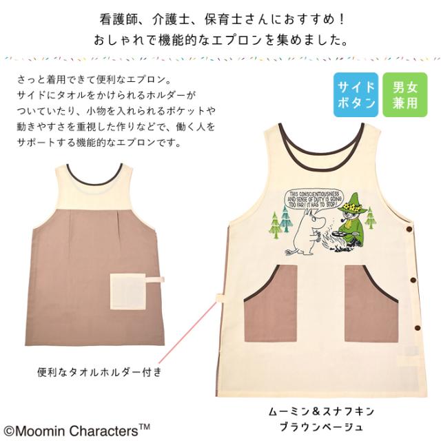 エプロン 保育士 おしゃれ ムーミン キャラクター リトルミイ かわいい おしゃれ 大きいサイズ 看護師 介護士 ヘルパー 保育園 幼稚園 クリニック 小児科 仕事着 ユニフォーム 制服 カラフル 前掛け ボタン留め タオルホルダー ポケット付き フリーサイズ agesugi_snk