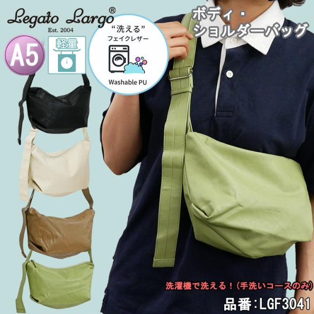 【送料無料】LegatoLargo レガートラルゴ 洗えるフェイクレザー ショルダー バッグ ボディバッグ ワンショルダー 軽量 軽い A5 旅行 行楽 おでかけ デイリー 使いやすい 通学 通勤 学生 OL 主婦 サブバッグ 光沢感 シルバー金具 型押しロゴ 斜め掛け 肩掛け LGF3041