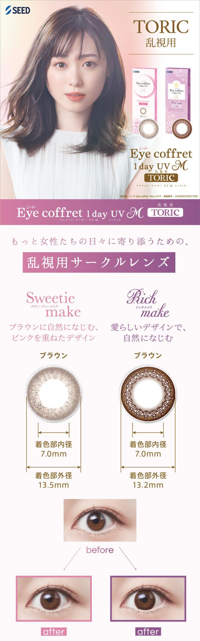 カラコン シード アイコフレワンデーUV M トーリック (10枚入) ×1箱 乱視用 送料無料 eye coffret 度あり 度なし ワンデー 1DAY 1日使い捨て カラコン カラーコンタクトレンズ 1日交換 福原遥 SEED