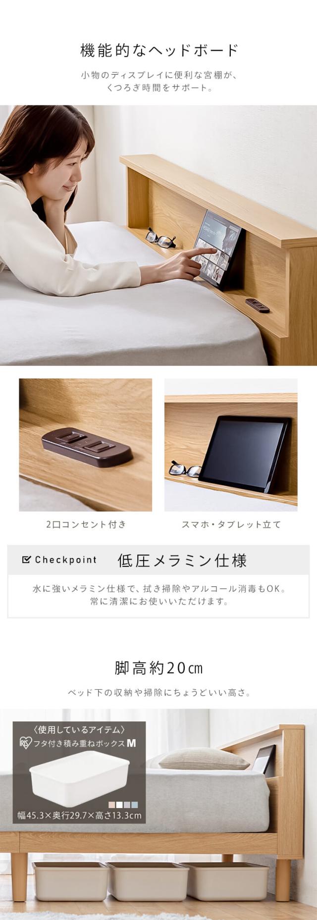 ベッド ダブル すのこ すのこベッド ベッドフレーム ローベッド フレーム 脚付き おしゃれ ヘッドボード 宮付き 棚 収納 2口コンセント付き 組み立て簡単 通気性 湿気対策 スノコ ダブルベッド ベット 新生活 アイリスオーヤマ SNB-D *