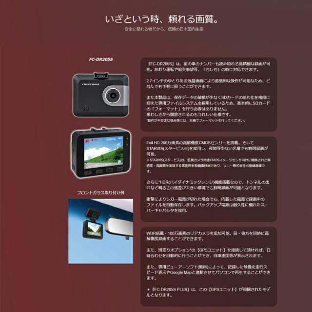 F.R.C.ドライブレコーダー FC-DR205S 日本製 STARVIS搭載 HDR フルHD 200万画素 ドラレコ ドライブカメラ 車載カメラ 1