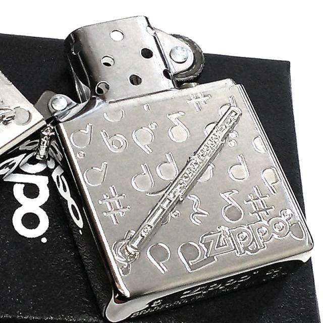 ZIPPO ライター 楽器 フルート メタル ジッポロゴ 可愛い シルバー 両面加工 ハート 音符 ホワイトニッケル かわいい おしゃれ ギフト