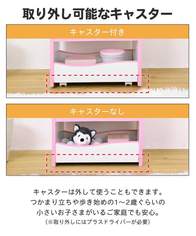 キャスター付きなので移動が楽々で、子供部屋だけでなくリビング学習のお供にも。