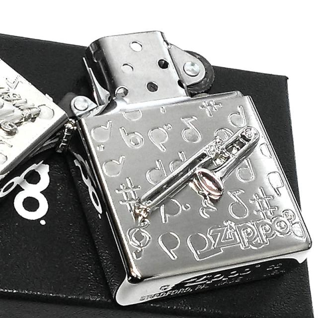 ZIPPO トロンボーン ジッポライター 楽器 シルバー 可愛い 両面加工 ハート 音符 ホワイトニッケル 銀 かわいい レディース プレゼント
