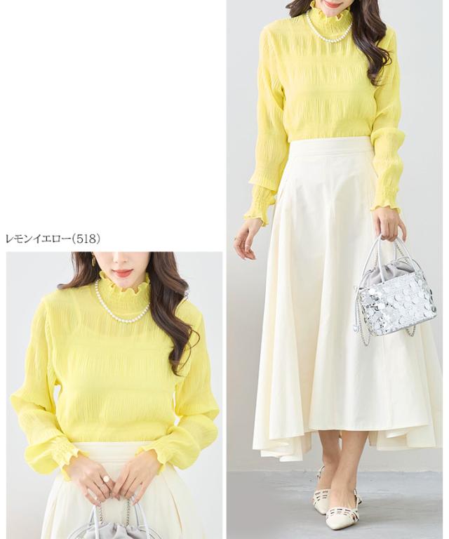 選べる12色☆シャーリングシアーブラウス レディース トップス シアートップス 長袖 ハイネック インナー レイヤード 重ね着 薄手 春 夏 秋 冬 上品 フォーマル オケージョン セレモニー 卒業式 入学式 ハレの日 きれいめ 可愛い スーツインナー 卒園式 入園式 七五三 お宮参り 透け感 シースルー ゆったり 肌見せ プリーツ シフォン 体型カバー オフィス シアーカットソー カットソー Tシャツ ロンT スタンドネック ボトルネック メロー メロウ フリル ガーリー フェミニン レトロ OL カジュアル 韓国ファッション デイリー 通年 パステルカラー カラフル デート 女子会 お呼ばれ 結婚式 パーティー 二次会 同窓会 食事会 イベント クリスマス K-pop アイドル ダンス 衣装 オールシーズン ロングシーズン 涼しい 通気性 日よけ 細見え 華奢 セクシー エレガント ママ 母 親 学生 通勤 通学 普段着 普段使い メッシュ チュール 軽量 軽い 速乾 ストレッチ 柔らかい ゆる ルーズ 10代 20代 30代 40代 50代 着回し 推し活 メンカラ メンバーカラー コンサート ライブ お揃い ペアルック 防寒 寒さ対策 冷え対策 発表会 UVケア 紫外線対策 お出かけ 旅行 オフィスブラウス 職場 仕事 華やか ビジネス 授業参観 保護者会 行事