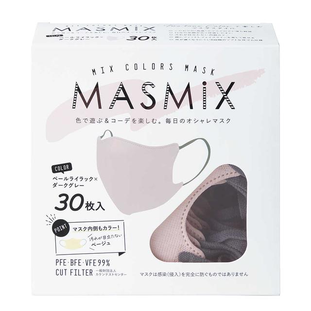 川本産業 MASMIX(マスミックス) マスク ペールライラック×ダークグレー 30枚