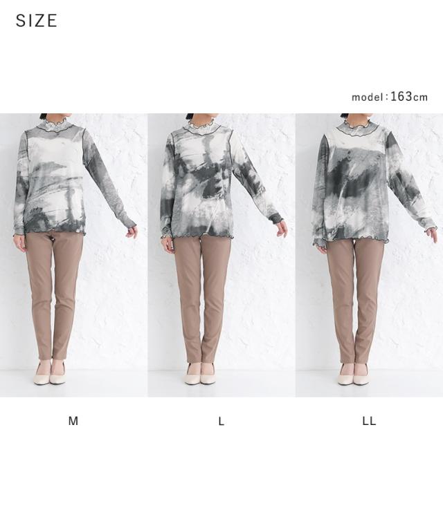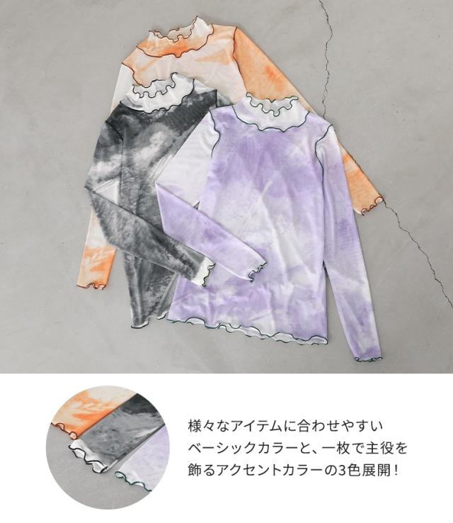 レディース トップス ロンT カットソー プルオーバー ストレッチ 伸びる 伸縮性 ハイネック スタンドネック 立ち襟 タートルネック 長袖 メロー メロウ 切り替え ニュアンス柄 マーブル柄 タイダイ柄 総柄 プリント 配色 メッシュ シースルー シアー 透け感 レイヤード 重ね着 おうちで洗える 秋冬春 カジュアル お出掛け 大人女子 大人可愛い お洒落可愛い モード ニュアンス ラフ Mサイズ Lサイズ LLサイズ XLサイズ ぽっちゃり 体型カバー 大きいサイズ 10代 20代 30代 40代 50代 60代 n'OrLABEL ノア—ルレーベル オレンジ パープル 紫 ブラック 黒 バイカラー 差し色 sheertops[ID]tjn0019[n'OrLABELニュアンス柄ハイネックメッシュカットソー]