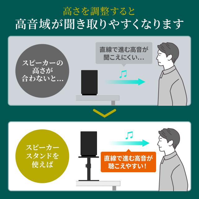 スピーカースタンド 卓上 金属製 高さ調整/角度調整対応 耐荷重10kg[100-SPSTN02]