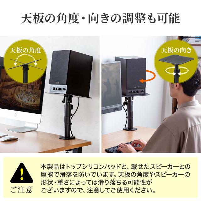 スピーカースタンド クランプ 卓上 金属製 高さ調整/角度調整対応 耐荷重10kg[100-SPSTN01]
