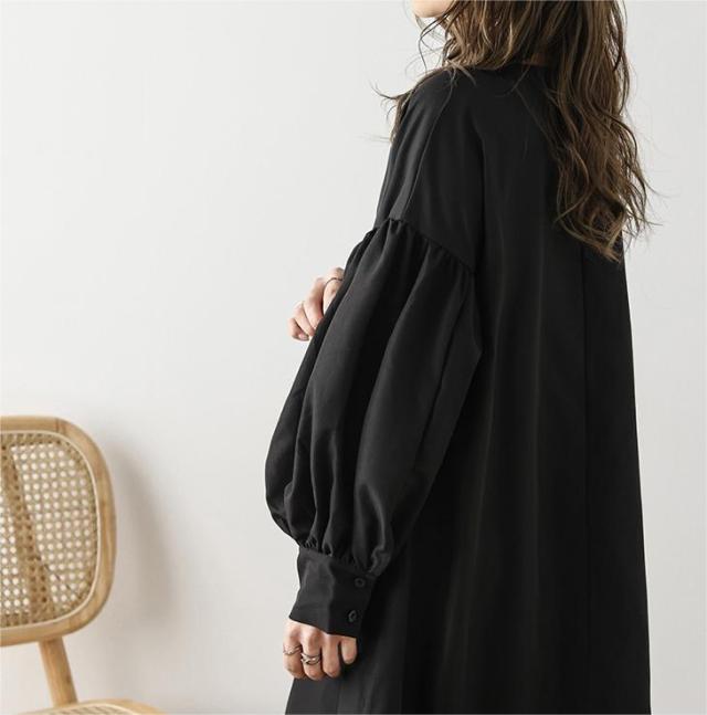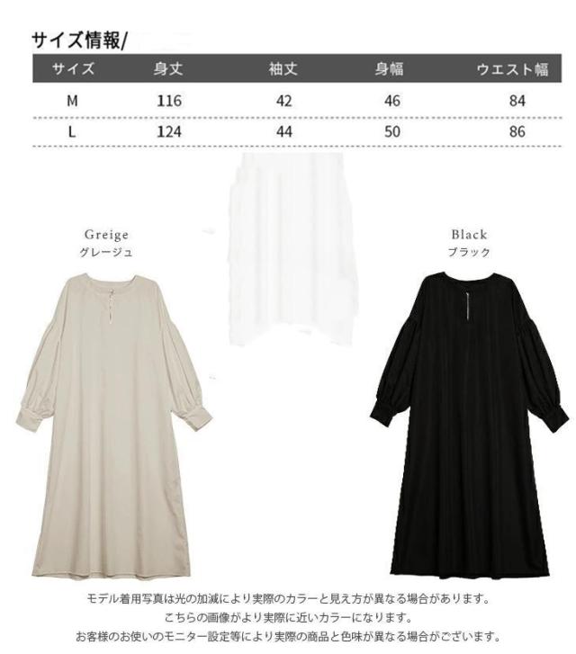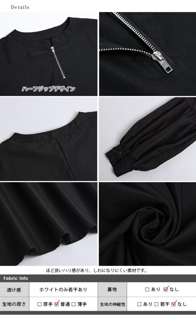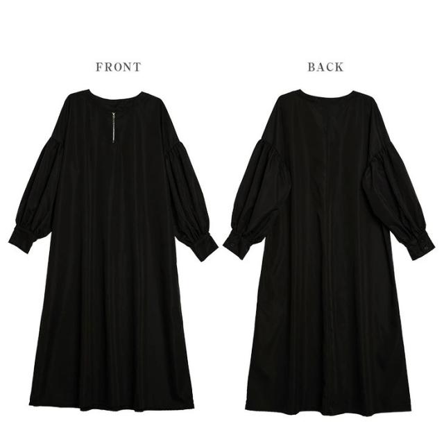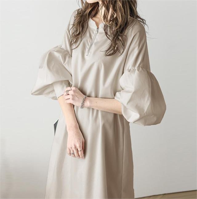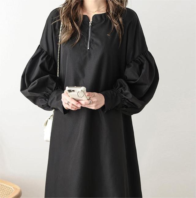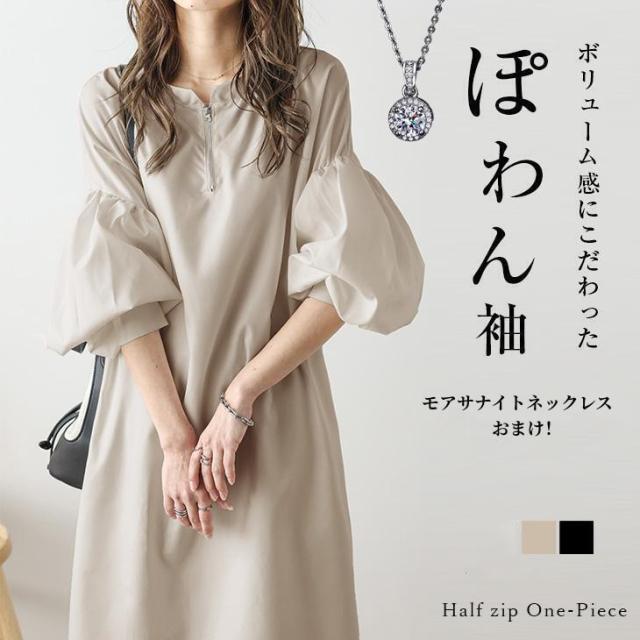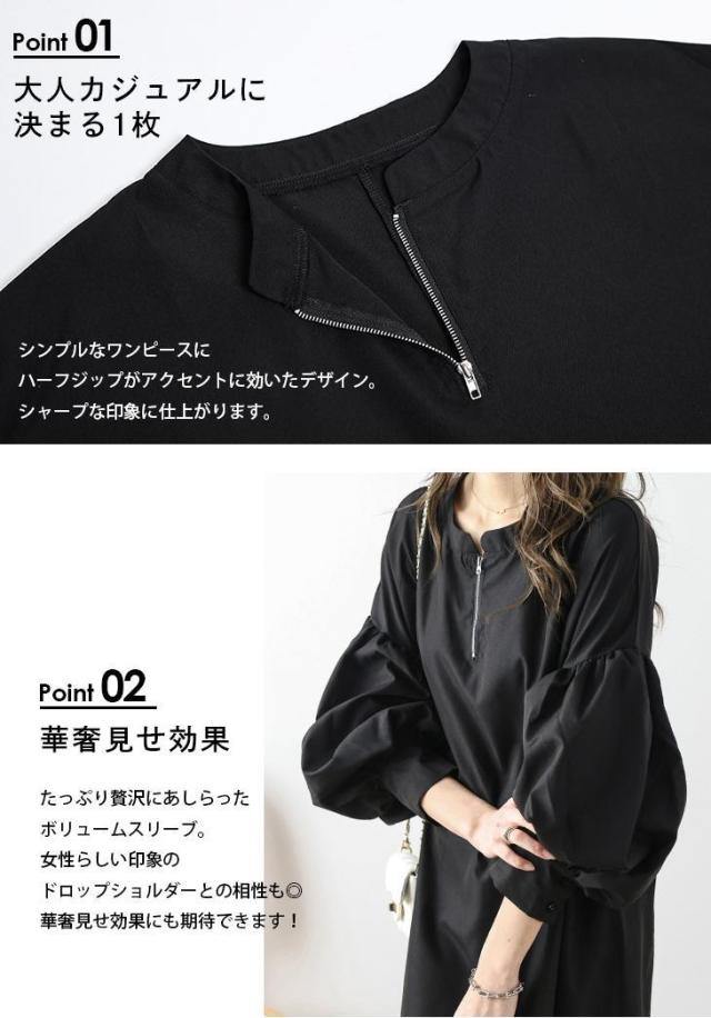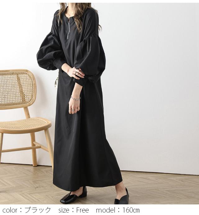 ワンピース ハーフジップワンピース ロングワンピース ボリューム袖 ハーフジップ ロング丈 送料無料
